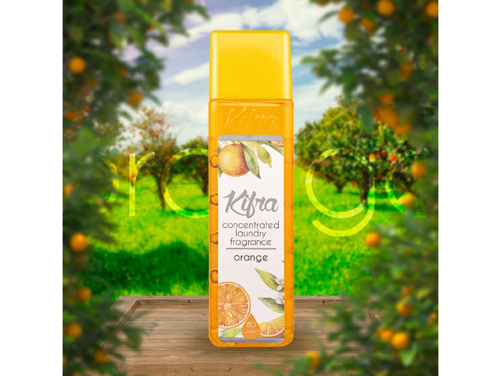 Kifra Orange je koncentrovaný parfum do prania, ktorý v sebe nesie radosť, sviežosť a pozitívnu energiu. Jeho vôňa je šťavnatá, citrusová a slnečná – okamžite vám zdvihne náladu a dodá bielizni pocit čerstvosti.